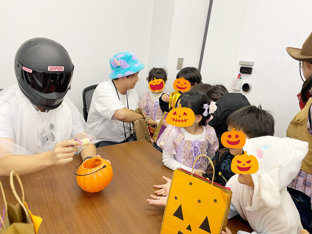 社員もそれぞれ仮装で出迎え、子どもたちとの楽しい交流のひとときを過ごしました。 気が付けば、弊社の従業員も“良い歳”ながら童心に返り、一緒になって盛り上がってしまいました。